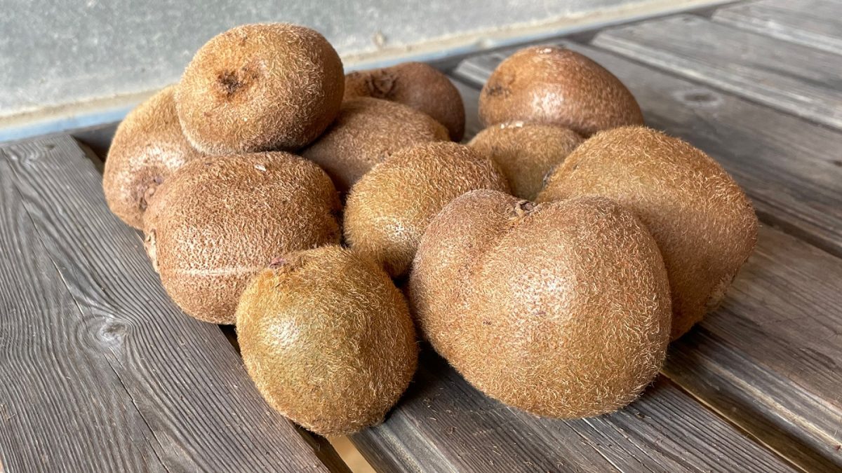 おつきあいも深まってきたある日、東野さんから規格外のキウイのお話を聞きました。収穫した玉のなかには(地元では果実のことを「玉」と呼びます)、形が悪い、大きさが足りないなど、市場に出荷できないものも当然あります。通常の出荷はできないため、農産物の直売所に置いたりもしますが、見た目のせいで売れ残ることもしばしば。ご近所にも配ったりするそうですが、食べきれないときは、致し方なく廃棄することもあるということでした。
